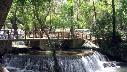 El río Piedra forma, al pasar por las inmediaciones del monasterio, un paraje de gran belleza paisajística, con muchas cascadas de agua que se dividen en innumerables hilos de agua o chorreras, siendo la cascada de la Cola del Caballo, con más de 50 metros, la de mayor altura. Sin embargo, es la cascada de La Caprichosa la que más interés genera. Ya desde principios del siglo xiv llegaban a la cascada numerosos viajeros en busca de un milagro, pues cuenta la leyenda que si el destino de la persona que lo pide es caprichoso, puede cumplir deseos.