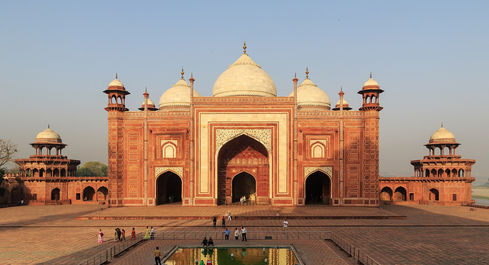 El Taj Mahal (Mahal, 'Corona de los palacios'; es un monumento funerario construido entre 1632 y 1654 en la ciudad de Agra, estado de Uttar Pradesh (India), a orillas del río Yamuna, por el emperador musulmán Shah Jahan de la dinastía mogol. El imponente conjunto de edificios se erigió en honor de su esposa favorita, Arjumand Banu Begum —más conocida como Mumtaz Mahal—, que murió en el parto de su decimocuarto hijo. Se estima que en su construcción trabajaron unos 20 000 obreros bajo dirección de un conjunto de arquitectos liderados por el arquitecto de la corte, Ustad Ahmad Lahori.