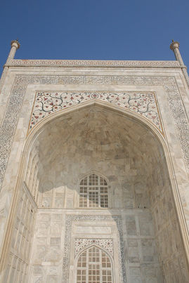 … Y es que el Taj Mahal es eso: poesía hecha arte, un canto al amor, una obra sublime que sólo un alma enamorada sería capaz de ofrecer al mundo. Allí, justo sobre el pórtico de entrada, se pueden leer unos versos del Corán que describen el paraíso, que te dan una idea de lo que nos vamos a encontrar y de lo que vamos a sentir; como palabras mágicas, aquel portón de bronce nos descubrirá un “palacio de perlas rodeado de jardines”.